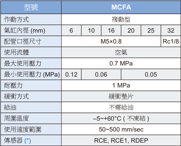 / 自由安裝氣缸 MCFA
