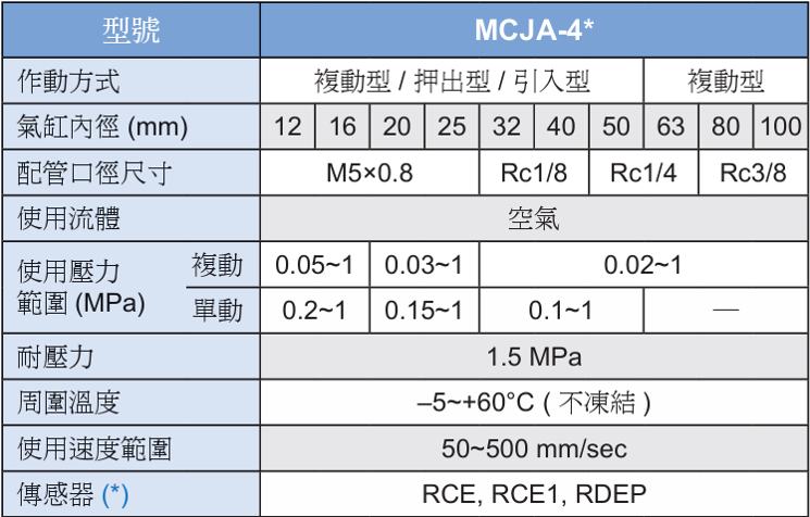 薄型(治具)缸 MCJA-4 雙軸雙行程型